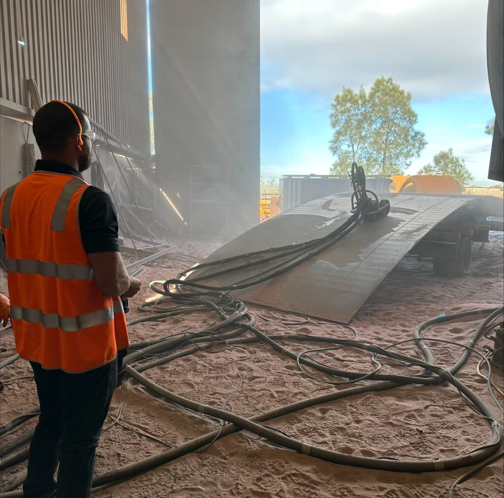 The challenge at hand was a significant undertaking in Tomago, NSW – a colossal 38 million-liter tank project. The existing process, involving two blasters spending an hour on each 12m x 3m piece, prompted the client to seek a more efficient, cleaner, and safer approach.
