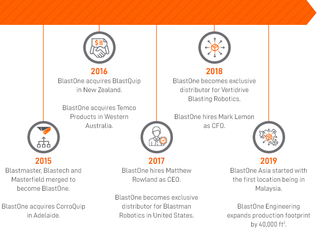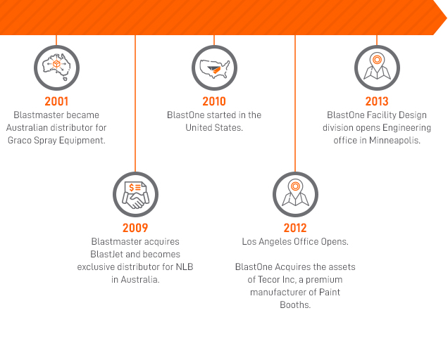 From originally housing all blasting and painting products in a backyard shed to now owning scores of warehouses worldwide, BlastOne’s commitment to our customers’ success continues to spur our own growth and global reach.