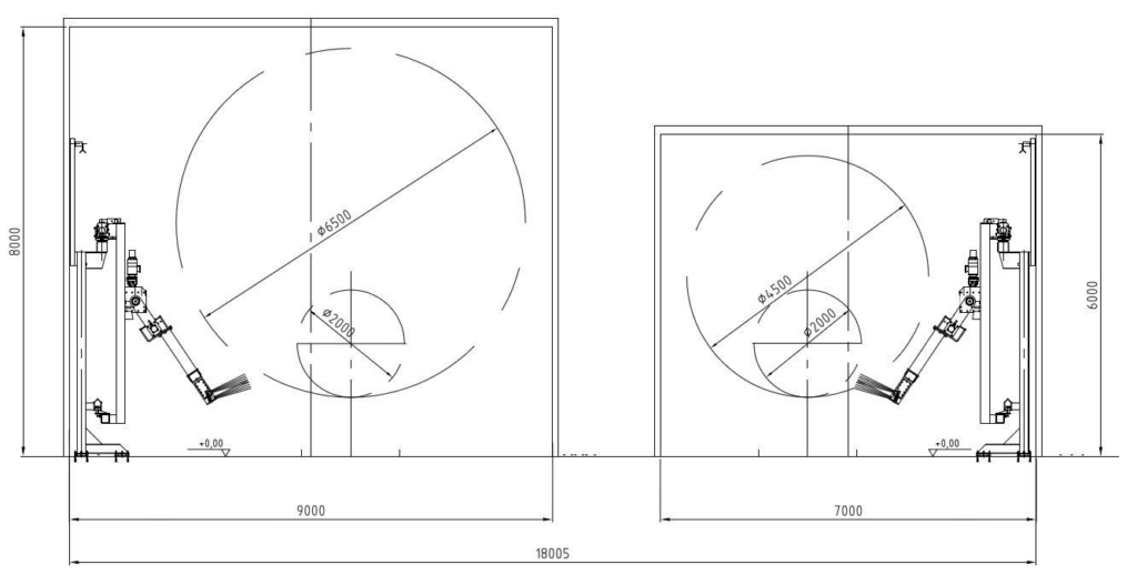 CS Wind installed three surface treatment lines comprised of an abrasive blasting chamber and a painting room. Subsequently, each abrasive blasting chamber has one Blastman B12 robot with two ¾” nozzles.