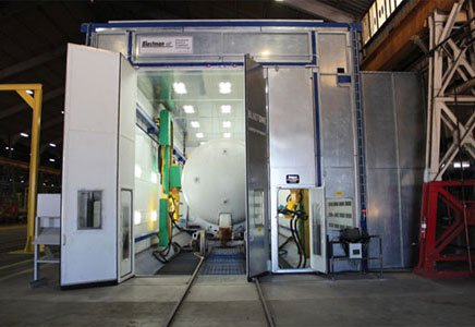 Blastman robotics are the perfect solution for blasting rail car exteriors.Manual blast booth to touch up and blast car interiors