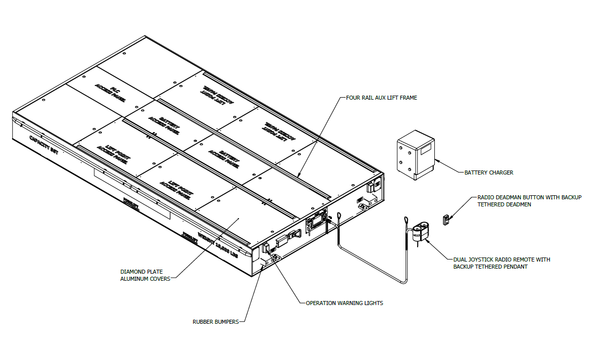• Batteries must have capacity to drive a fully loaded cart (56 tons) a minimum of 2,000 feet on a single charge at a mid-battery life of 500 charge / discharge cycles