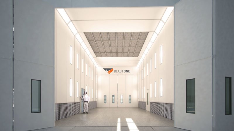 BlastOne worked with Irving Shipbuilding Inc. to design and engineer a highly custom ship module paint facility. The massive paint facility measured a total of 180’ (54 m) long x 88’ (26.5 m) deep x 52’ (15.6 m) high. We incorporated two separate paint booths.