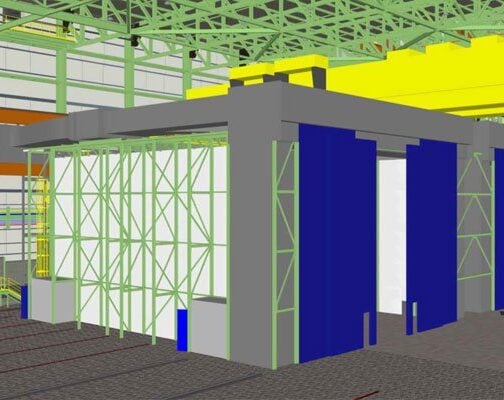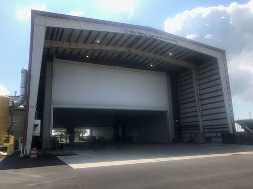 Irving had the option to separate the larger paint booth into two separate paint booths. The dividing curtain allowed up to 3 different ship modules to be painted simultaneously.