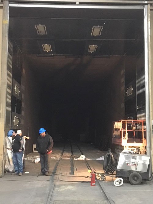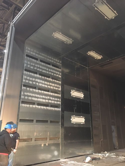 A leading manufacturer of structural wind towers wanted a high production blast room for surface treatment of wind tower sections.