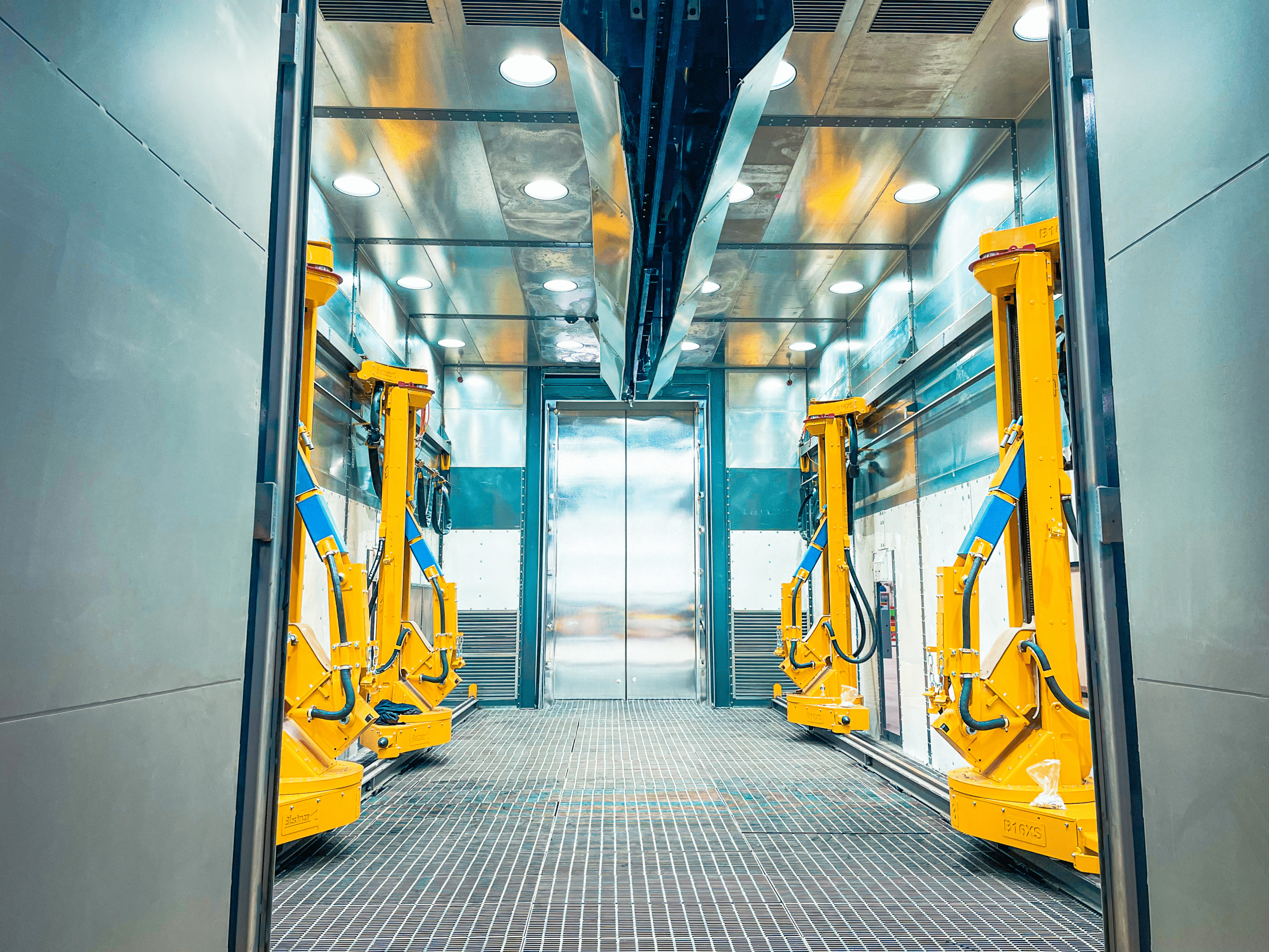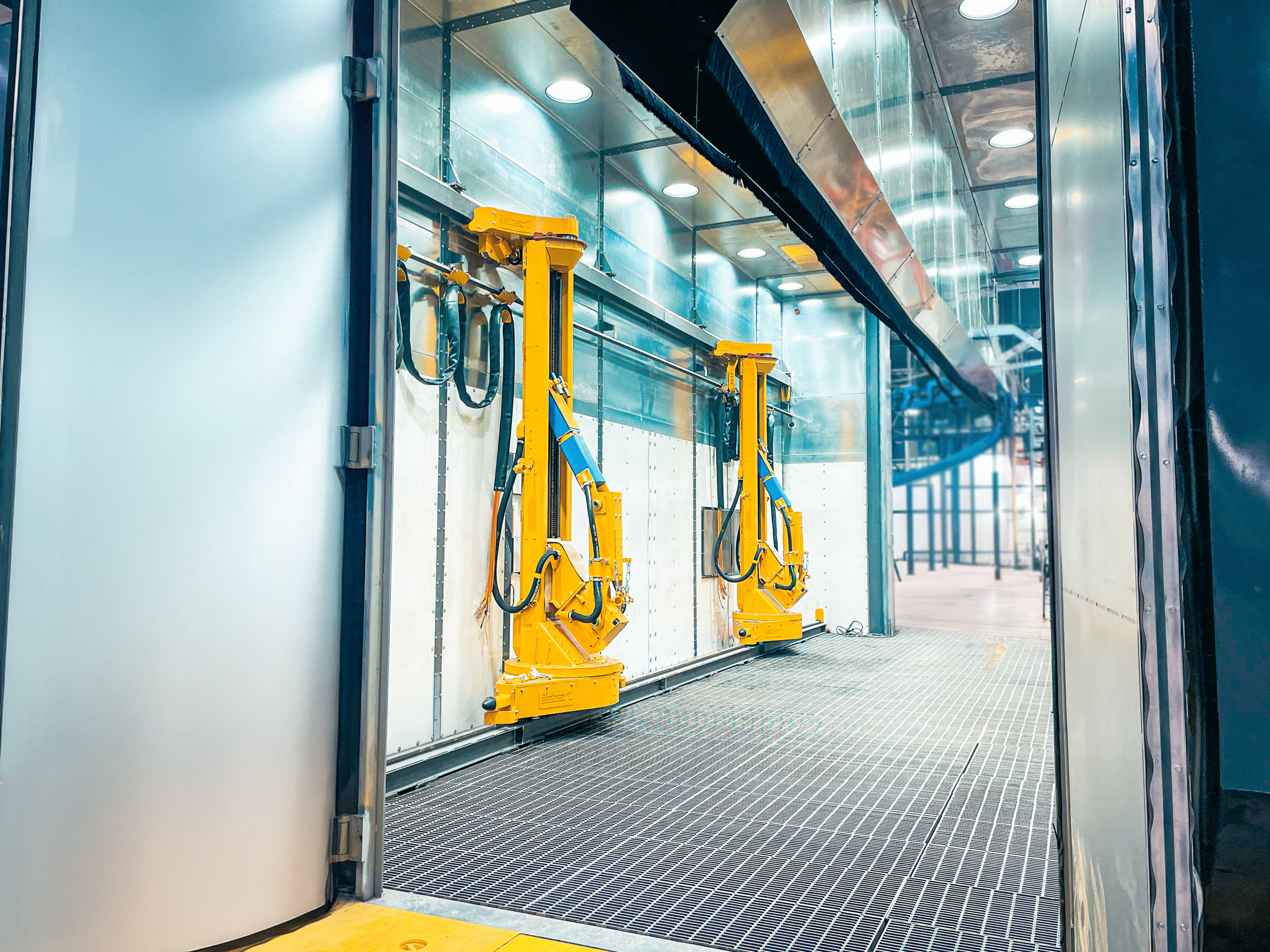 The integration of an automated robotic blasting system that could consistently achieve a targeted six-minute cycle time per trailer was a major challenge. The system needed to synchronize multiple robots to ensure a uniform blast finish across large, complex components. Delays in the delivery and installation of the Blastman robots also added pressure to the project timeline, making efficient planning and execution crucial.
