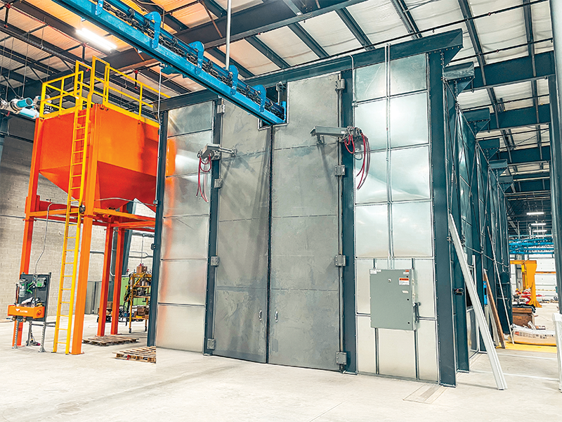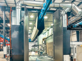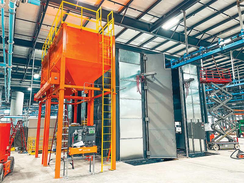 The synchronized robotic systems were engineered to work in harmony, achieving a consistent and high-quality finish within the projected cycle time. BlastOne also installed a fully automated abrasive recovery system, which featured oscillating conveyors, a high-capacity bucket elevator, and an airwash system for optimal abrasive recycling. This system ensured that the booth ran efficiently, with minimal environmental impact, while reducing labor demands and improving safety by limiting personnel entry into confined spaces.
