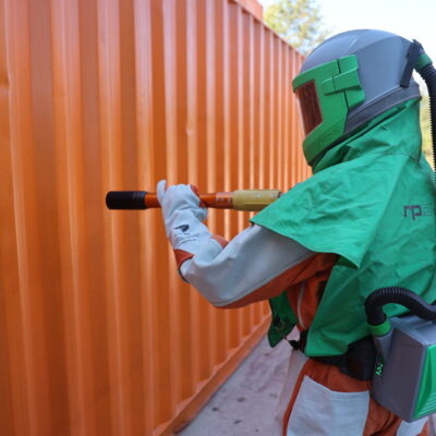 Previously, products were cleaned by manual blasting operations outdoors. However, due to the vast surface area that needs to be cleaned, this method requires significant labor hours and a workforce. Additionally, manual blasting necessitated the use of costly and time-consuming scaffolding to access all areas of the barge.