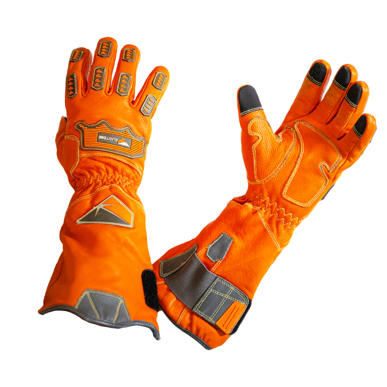 - Press stud closures and Velcro strip fastening for double protection from grit ingress and resistance to damage from steel grit.