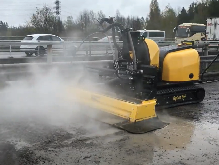 The track-driven Robot 557H is the ideal choice for parking garages, bridges and other horizontal surfaces. Together with an adjustable chassis, the robot is a versatile and compact solution with incredible maneuverability in confined spaces. The Robot 557H has been designed with the ability to extend the tracks, as well as sliding the main body, for easy positioning of the the same series. Conjet robotics are: Reliable They use industry leading components which make Conjet’s ACR™ robots built for the harshest environments. In addition, Conjet’s durable ACR™ robots ensure users experience trouble-free operation with minimal unplanned downtime. User Friendly The 7-Series Conjet ACR™ robots are equipped with a remote control unit with color screen, giving operators the opportunity to set and visualise the parameters. Maneuverability of the robot is easy for operators robot with the use of two joysticks. In addition, an Intuitive GUI (Graphical User Interface) allows for trouble free programming and monitoring of the hydrodemolition process. Safe The operator can stand and supervise from a safe distance during the hydrodemolition process, controlling both the robot and the pump via Bluetooth communications as if they were ONE unit. It's called Conjet ONE – the safest way to remove concrete. Versatile A 7-Series Conjet ACR™ robot allows users to perform a wide variety of tasks. There is also a range of accessories to further increase flexibility to meet specific project needs.