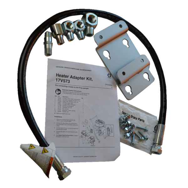 The Graco Viscon Heater King Mount Kit is specifically designed to facilitate the mounting of Graco Viscon Heaters onto King Pumps, providing a sturdy and secure fit. This kit includes all the necessary components, such as the mount itself, hose, and fittings, to ensure a hassle-free installation. Features Include:- Compatibility: Designed for Graco Viscon Heaters and King Pumps.