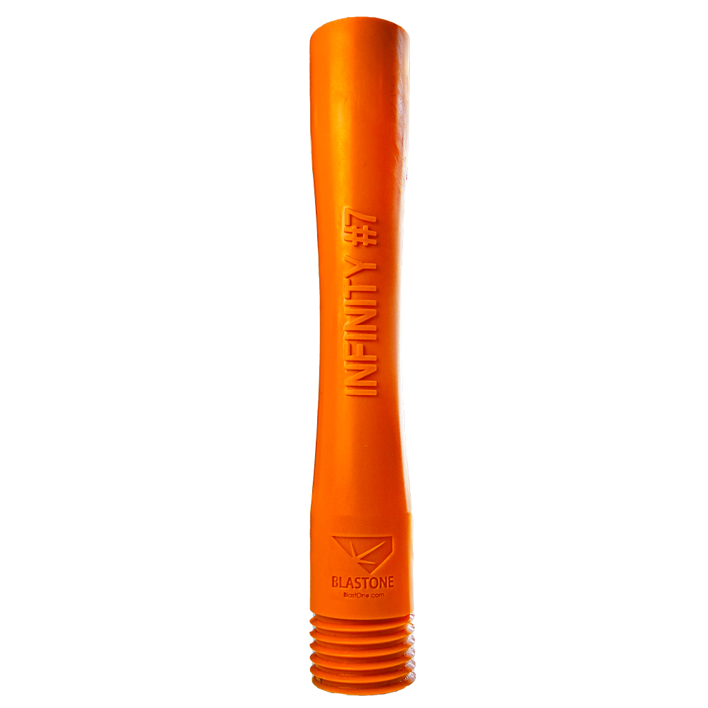 Built on the success of the groundbreaking SnakeBite nozzle, the BlastOne Infinity XL Blast Nozzle represents the latest proprietary advancement in abrasive blasting nozzle design. Tailored for speed and endurance, this high-performance nozzle is engineered with an extended venturi profile that accelerates abrasive flow by up to 35% over standard nozzles —ideal for contractors and fabricators aiming for maximum efficiency and throughput. The Infinity XL features a space-age silicon nitride liner that uses the SnakeBite design to deliver a consistent blast pattern, reduced abrasive consumption, and an extended wear life. Its longer body, ranging from 280-330mm depending on the orifice size, enhances blast speed without compromising control. With a rugged urethane outer layer and jam-resistant contractor threads, the Infinity XL blast nozzle is optimized for high-output industrial environments.