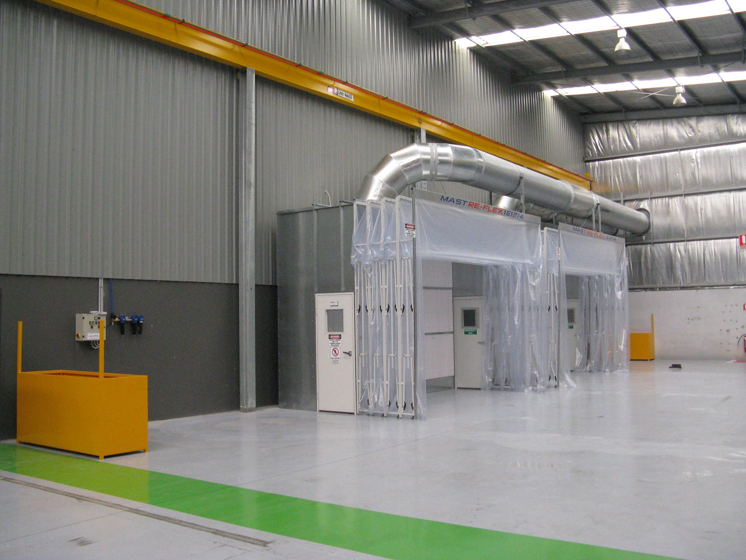 The MASTRE-FLEX Retractable Spray Booth System is the ideal solution to painting heavy, hard-to-manage work pieces.