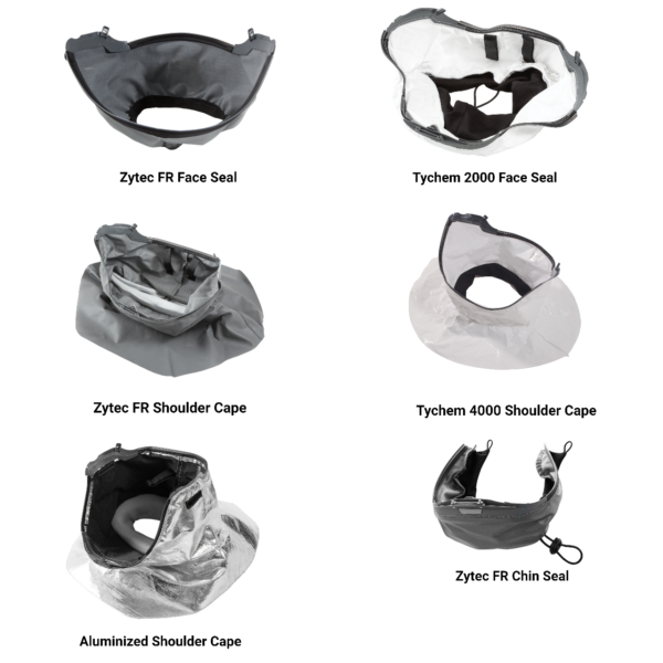 The GVS / RPB Z-Link is the most versatile respirator, and the cape selection offers a version for almost any application, with Fire Resistant, Aluminized, and Tychem options. Below are the various versions that are available.