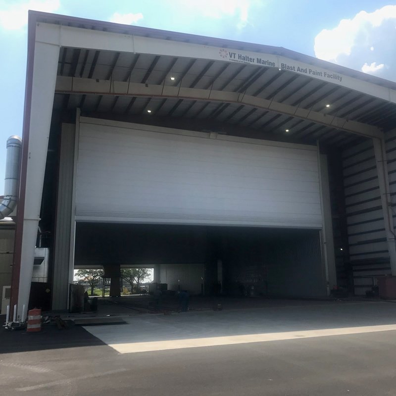 These blast and paint facilities are specifically designed for those involved in ship or boat manufacturing or repair. They are ideal for those who are interested in recycling sandblasting abrasive and wish to better control the environmental conditions around their sandblasting or painting operations. Applications vary in size and type of work being done. Smaller booths are ideal for boat shops who want to migrate any sandblasting/painting operations into a more controlled environment. Other booths are designed and assembled to accommodate blasting and painting segments of large ships, including merchant vessels and capital defense vessels. In most cases, our clients erect their own dedicated structure, which BlastOne configures to meet all the requirements and needs for blasting and painting—either as separate chambers for each process or as a single, hybrid blast/paint hall. Airflow management is among the most critical features of these booths. BlastOne’s proprietary ventilation design is rigorously engineered to maximize efficiency in the volume of air movement within these larger halls and facilities, which, in turn, reduces heating and de-humidification requirements to remain within specifications and regulatory requirements. These air flow control measures are proven to reduce the overall energy costs of these operations and streamline sandblasting and painting production uptime. Every booth is a custom design, precisely engineered to meet the production requirements and needs of each site. They provide the necessary environmental stability for production in any weather conditions, and they can be outfitted with a wide variety of abrasive handling and recycling equipment.