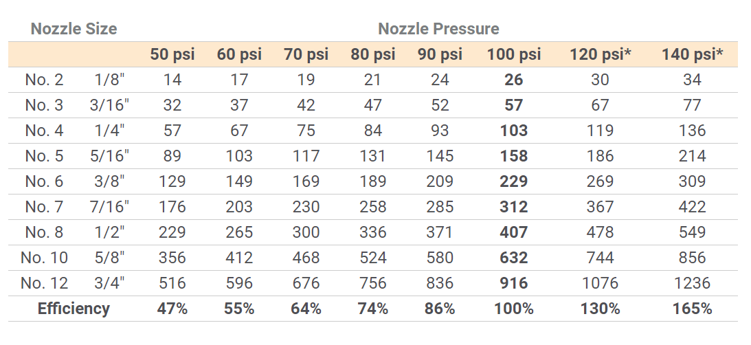 - Standard Pressure Nozzle effective between 90-110 psi