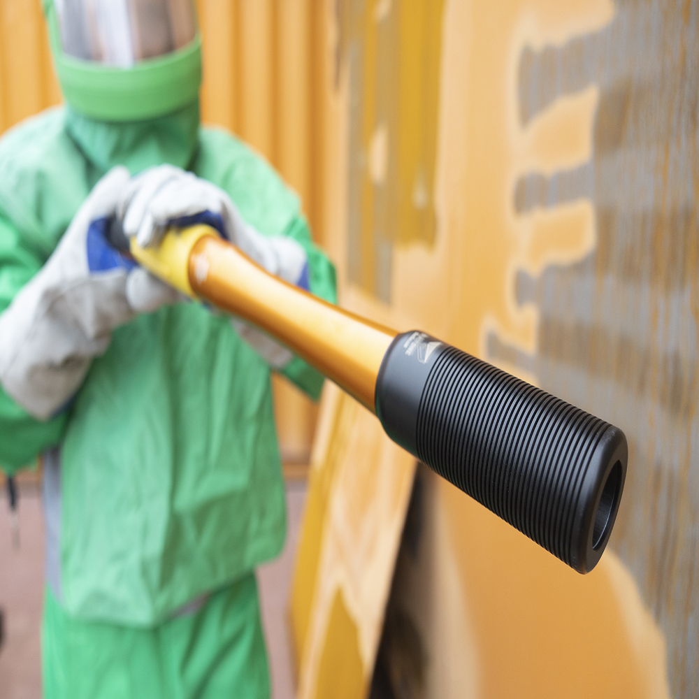 Safe, High-Powered Hand-Held Blasting The only #10 nozzle in the market that can be used for hand-held blasting for extended periods. Reduced thrust enables blasters to be consistently productive for extended periods. Operators experience less fatigue over the shift, the week, and the project, leading to better project outcomes and employee retention. Importantly operators will have more energy at the end of the day improving their quality of life.