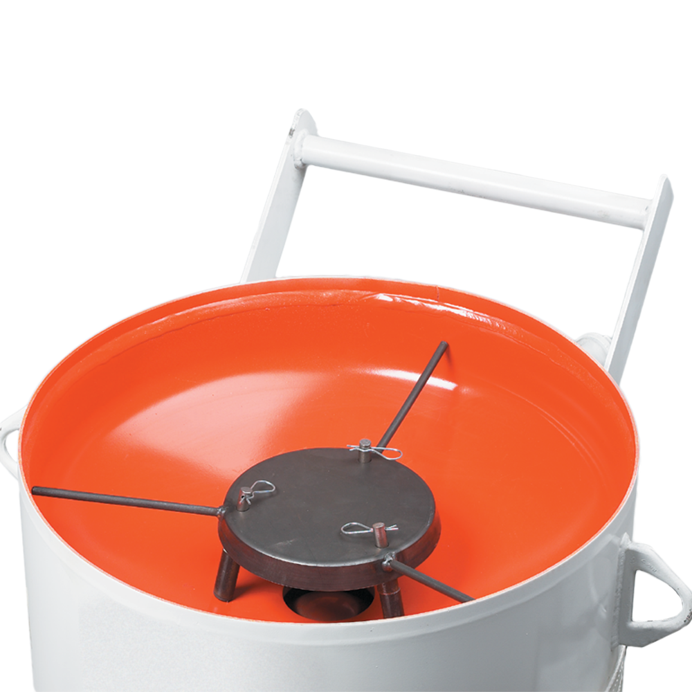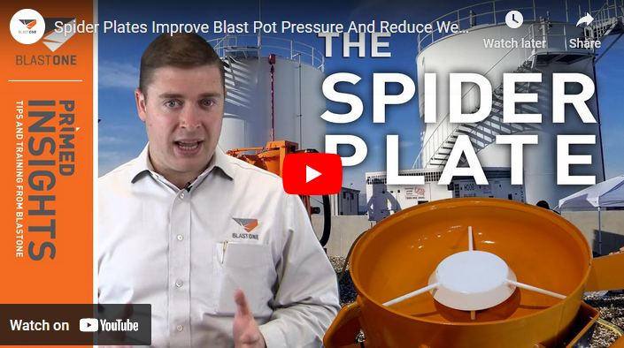 Sits over the pop-up valve. This allows it to seal off correctly. Incorrect sealing can occur when abrasive is stored directly in the blast pot top bowl. Direct storage of abrasive occurs in auto-loading set-ups such as blastrooms and recovery systems. Pop-up valves do not seal well against abrasive. An incorrectly sealing pop-up allow air to escape. This accelerates wear and wastes compressed air. Adjustment of leg height allows fitting to different pots. Plate centers over valve by spider arms.