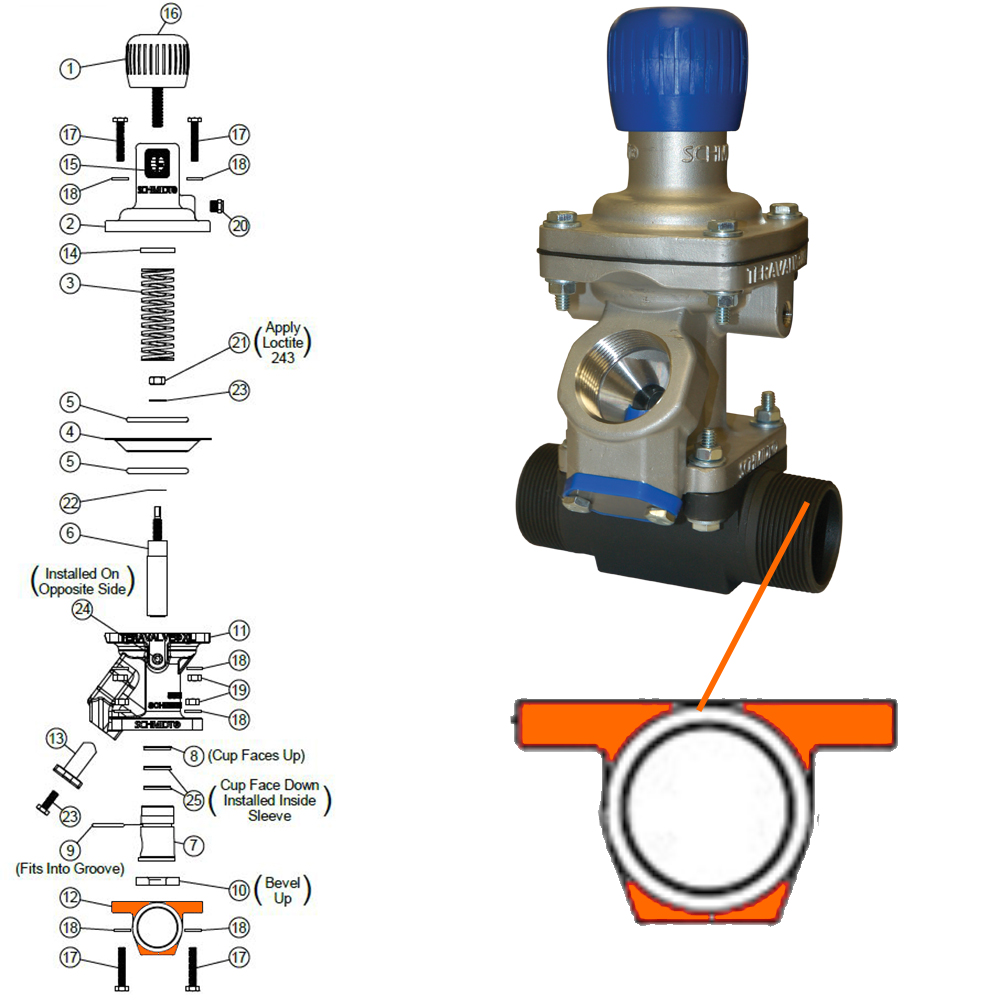 BlastOne has replacement parts for all Axxiom / Schmidt metering valves. This group includes the various sizes of pipe nipples, at the bottom of the base.