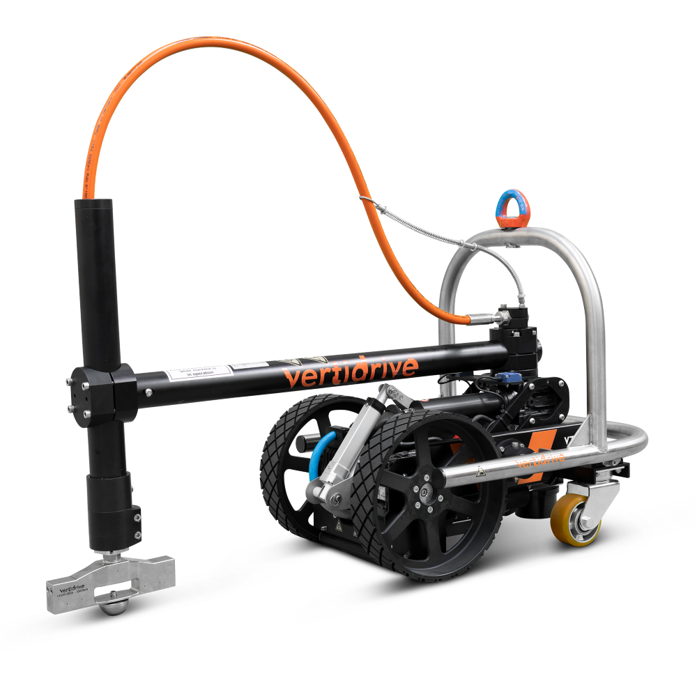 On large steel surfaces and structures the VertiDrive V700 Blasting Robot is the industry standard when it comes to providing the most comprehensive cleaning and blasting solution. Cost-efficient and timely removal of industrial coatings, corrosion and similar contamination on large steel surfaces like ship hulls and storage tanks is a monumental challenge. Site workers are able to operate more safely and efficiently - which ultimately translates to lower costs! Operator safety is ensured via the V700's ability to be wirelessly controlled at distance. How is the V700 Series different from the M7?- Stronger Motors (140W vs 315W)