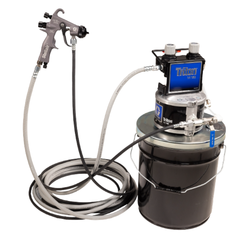 The Warrior 4000 cart-mounted sprayer revolutionizes conventional paint spraying, being very quick to setup, cleanup, and change color. Plus, saves on solvent and sprays with less fluctuations.Applications