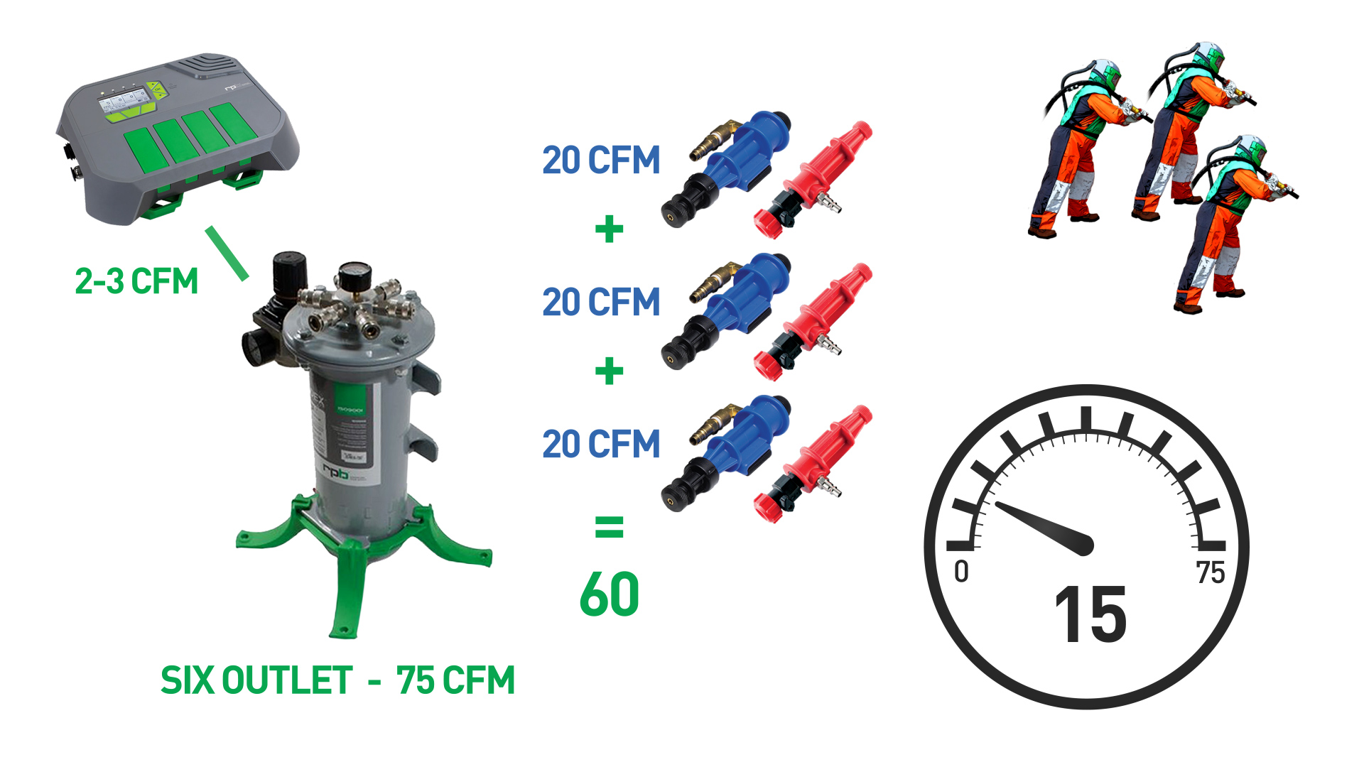 While the C40 does have the highest degree of cooling capacity, it’s conditional upon your blasting setup. Whether you should use the C40 vs. the blue cool air tube comes down to how big your blast crew is and the equipment being used.