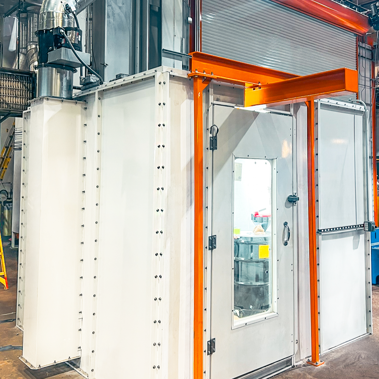The primary objective of this project was to support production expansion while maintaining a limited booth footprint. Trane Technologies sought to minimize material handling bottlenecks, increase throughput, and optimize workflow efficiency without increasing floor space. The solution needed to support a new product line while delivering consistent, high-quality finishing results.