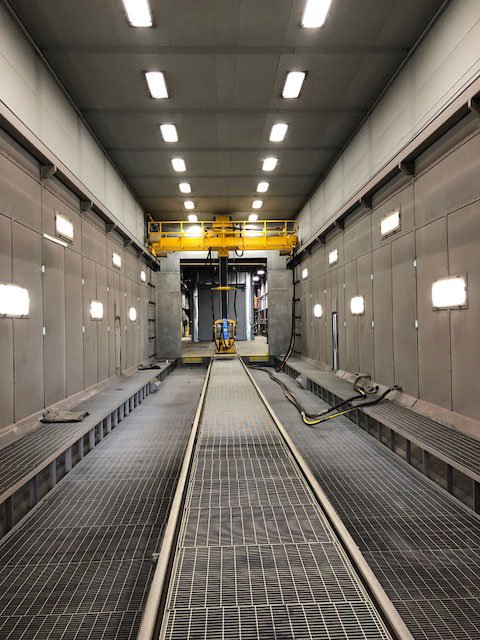 While waiting for the robotic components to arrive, we built the blast room initially for manual blasting. This limited production downtime and had temporary access platforms for operators. Later, we removed these platforms once the robotic components were in operation.