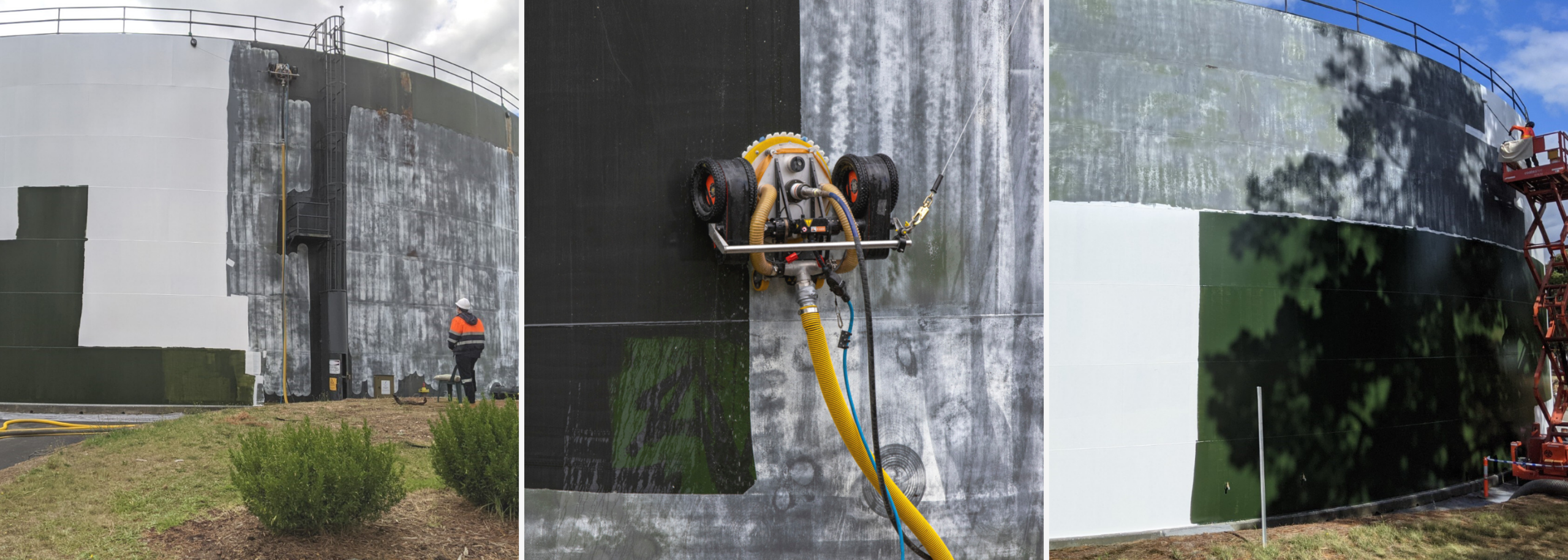 Because the tank underlying steel had not been badly corroded, they did not have to grit blast. The high pressure water was enough to expose the underlying surface roughness that was created when blasted previously.