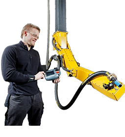 Due to the repetitive nature of the work, robotics have been proven to reduce production costs and guarantee an excellent, consistent production. Because robots are not subject to fatigue, high flow blasting equipment is requires to take advantage of their productivity gains. This means large port valving, large bore blast hoses, high volume compressors and bulk blast pots.