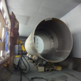 Wind towers are usually blasted in a chamber in three sections per tower. Commonly used abrasives include GMA Garnet and metallic grit. Both the interior and the exterior of the tower require blasting. The exterior of a wind tower has a requirement for greater corrosion than the interior and is often given a coat of hot metal spray prior to top-coating. Steel grit is used if a hot metal spray coating will be applied to the tower’s exterior because of grit’s ability to provide an angular profile. If the exterior of the tower is not coated with a hot metal spray prior to top coating, then GMA Garnet will be used on both the inside and outside of the towers.
